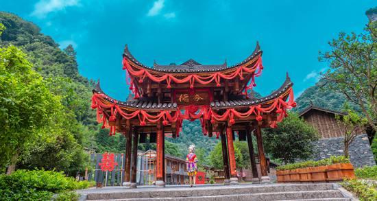 在風(fēng)景秀麗的湘西武陵源風(fēng)景區(qū)內(nèi),鑲嵌著一顆璀璨的明珠——德夯苗族村?!暗潞弧睘槊缯Z(yǔ),意為美麗的峽谷,距湘西自治州首府吉首市約24千米。這是一塊神奇的土地,這里溪流縱橫,峽谷深壑,瀑布飛瀉,落差達(dá)216米的流紗瀑布,如白練凌空,似銀紗懸壁。這里群峰競(jìng)秀,盤(pán)古峰海拔700多米,峰頂呈葫蘆狀,分大小兩峰,絕壁千仞,天險(xiǎn)難度,站立峰頂,方圓景色盡收眼底。這里有著名的公路奇觀,這便是湘川公路上最險(xiǎn)關(guān)卡——矮寨天險(xiǎn),從山麓到山頂全長(zhǎng)只有6千米,卻轉(zhuǎn)了13道彎,公路如白帶盤(pán)旋于青山之上,車(chē)行路上,伸手可抓到窗外白絮般的云霧。德夯距湘西自治州州府吉首市,屬省級(jí)風(fēng)景名勝區(qū)。這里山勢(shì)跌宕,絕壁高聳,峰林重疊,形成了許多斷崖、石壁、瀑布、原始森林。區(qū)內(nèi)溪河交錯(cuò),四季如春,氣候宜人,有豐富的動(dòng)、植物資源,自然風(fēng)光秀麗迷人。自矮寨鎮(zhèn)沿溪上行4公里至德夯苗寨,沿岸筒車(chē)、水輾、古渡、小舟,伴以苗家吊腳樓,一派田園詩(shī)情。九龍溪穿寨而過(guò),四周山色清幽,懸崖如削。過(guò)石拱橋可登盤(pán)古峰,峰高400余米,山巔有大、小兩峰,頂寬約5公頃多,為盤(pán)根錯(cuò)節(jié)的原始森林,四周絕壁,站立峰頂,方圓景色盡收眼底。